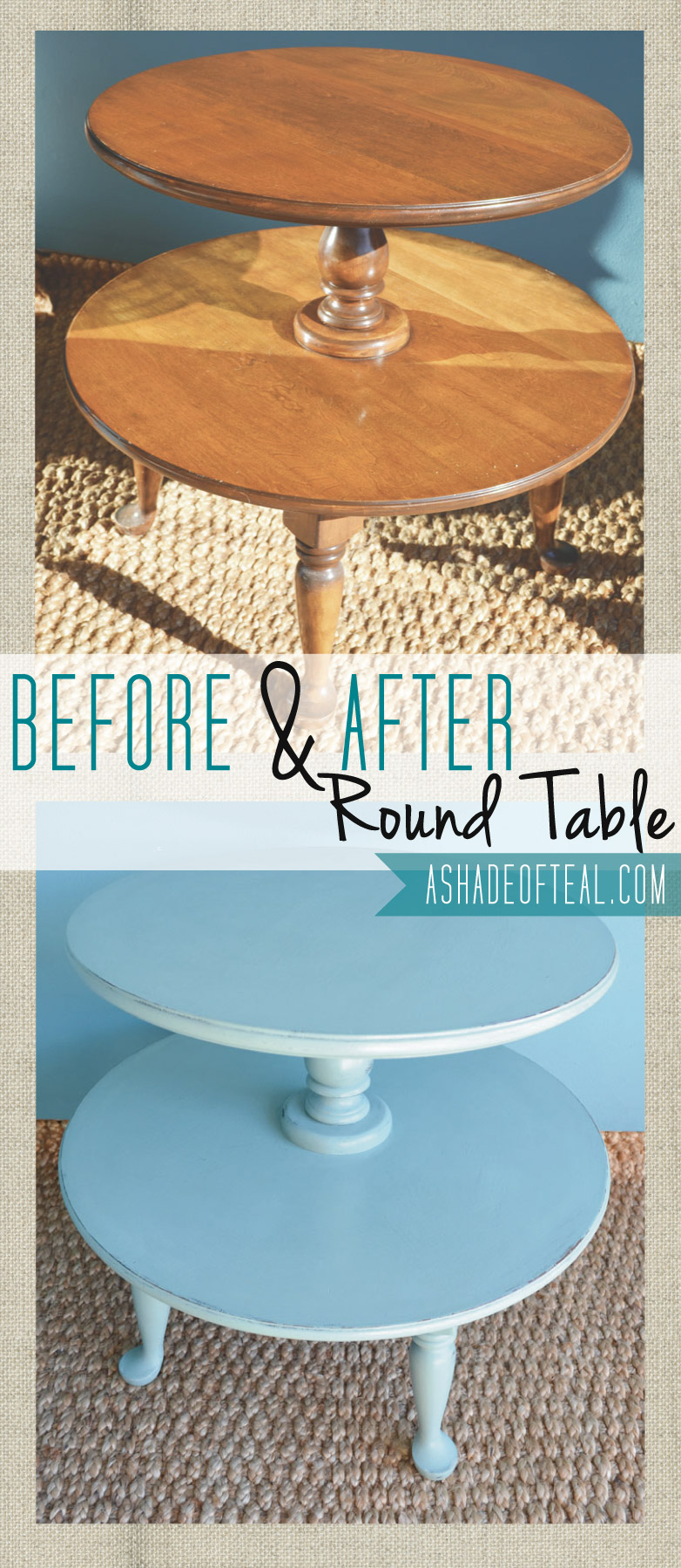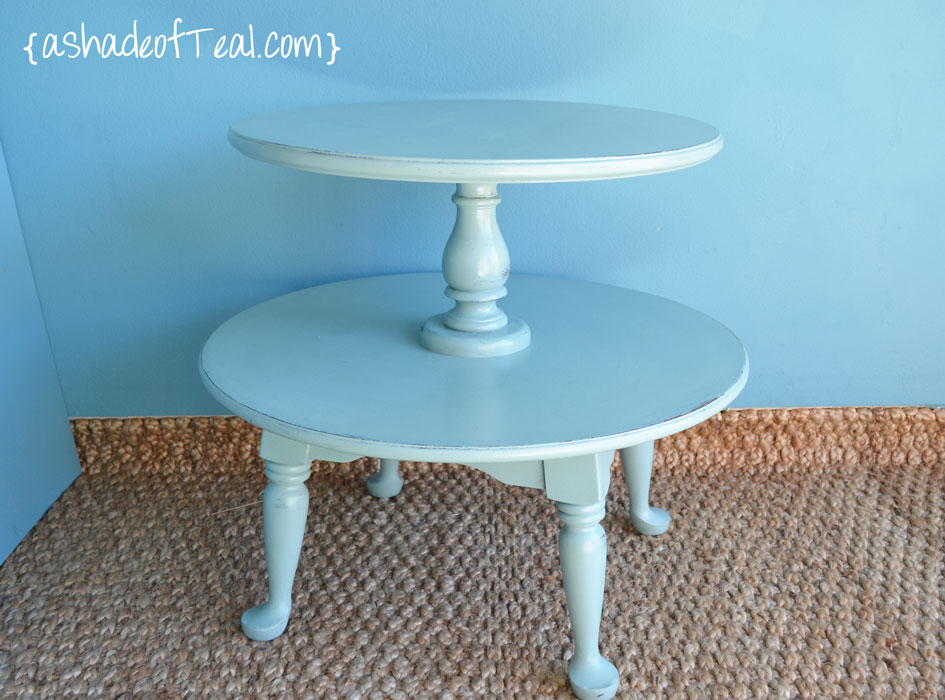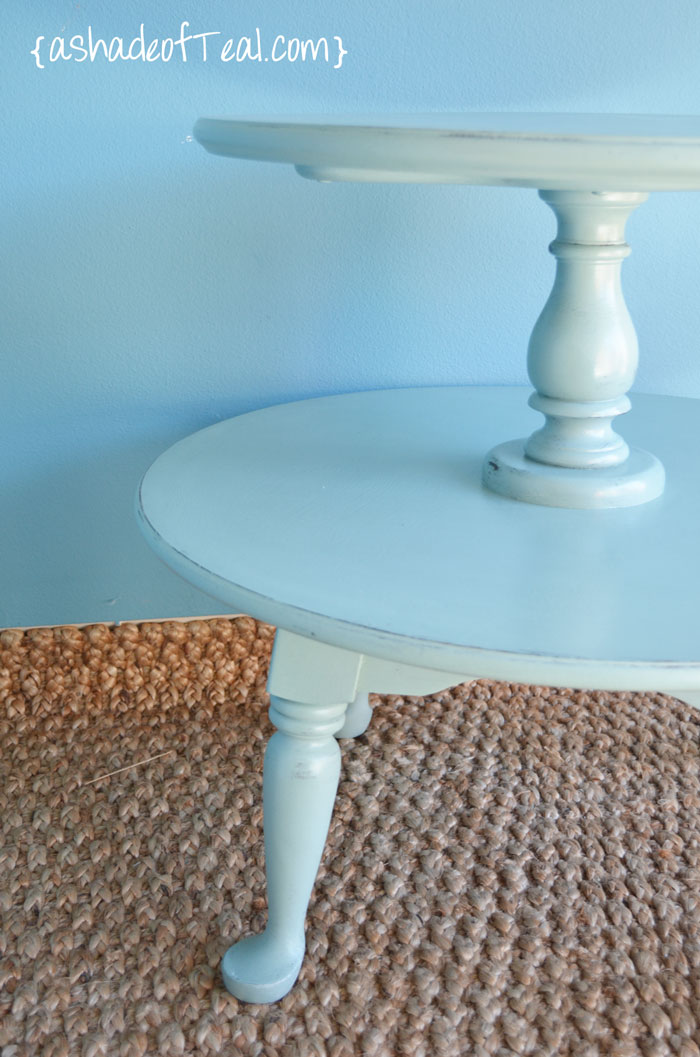 I used Annie Sloan chalk paint in Duck Egg Blue and finished it with 2 coats of poly.