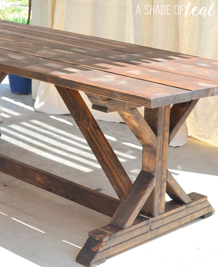 I’ve been wanting to build a outdoor rustic farmhouse table for some time now. I honestly was a little scared and thought it would be too difficult. I fell in love with Shanty 2 Chic’s “Fancy X Farmhouse Table” on Ana White’s website forever ago.